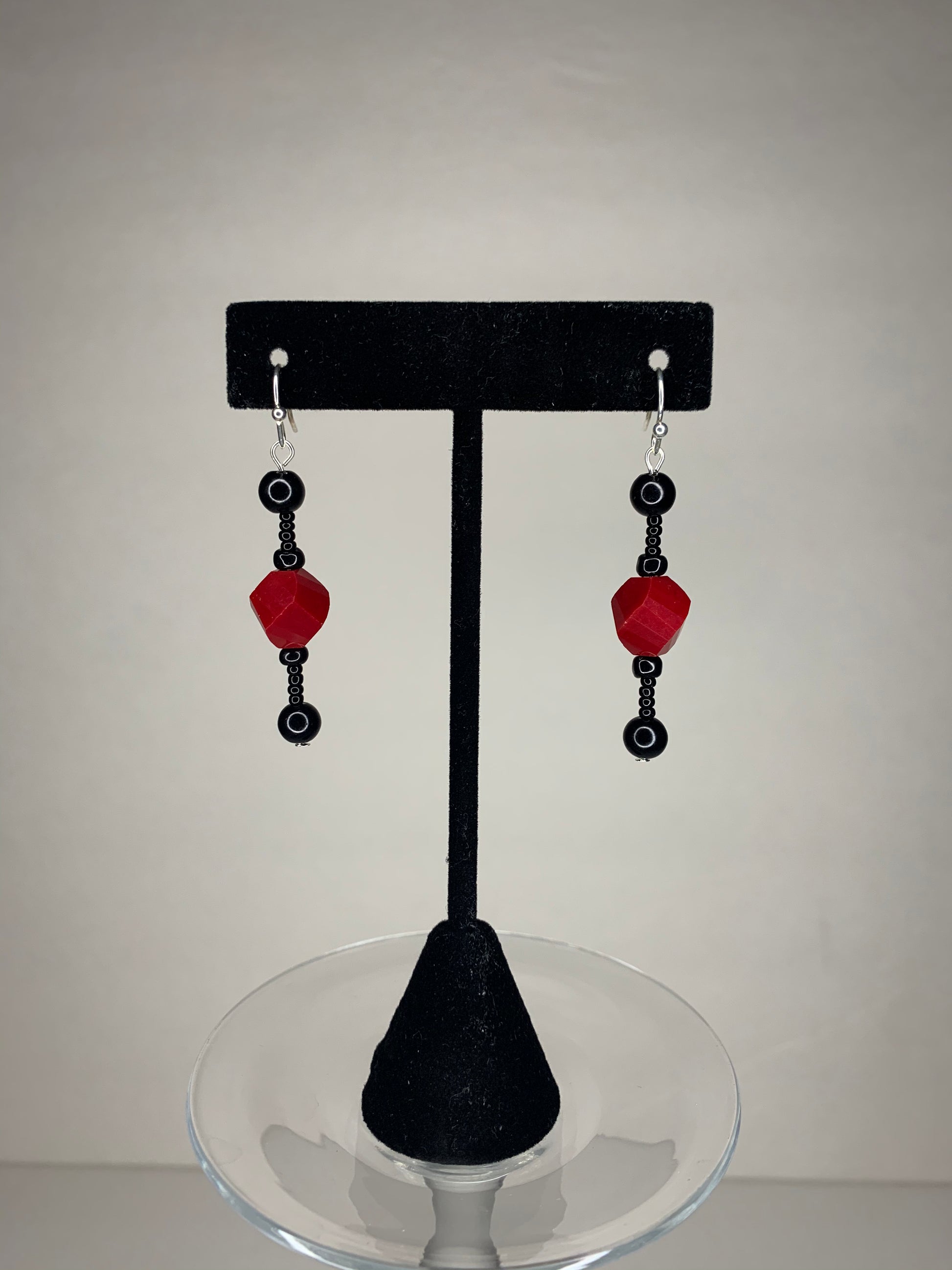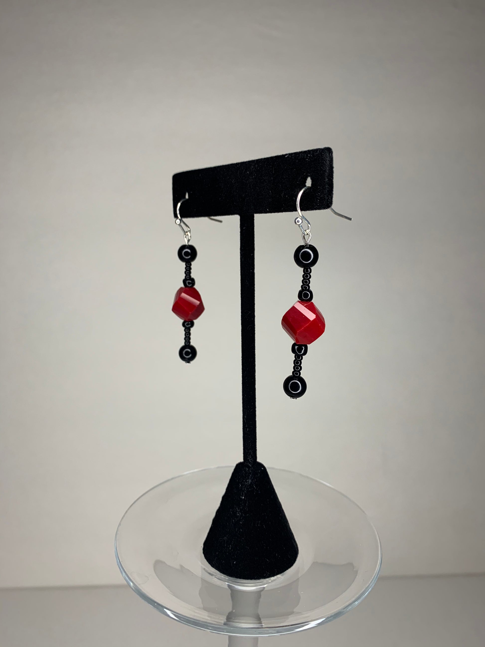• Stainless steel hooks with glass beads and 4 Onyx beads