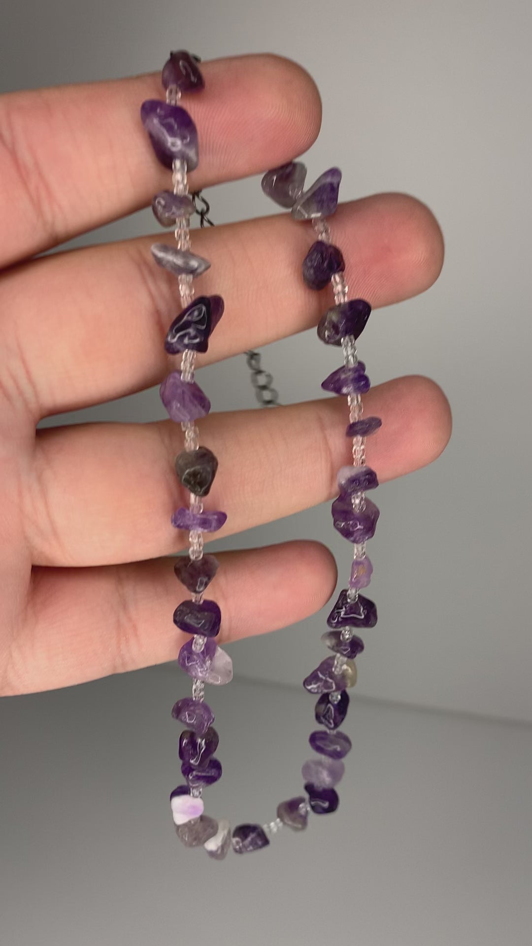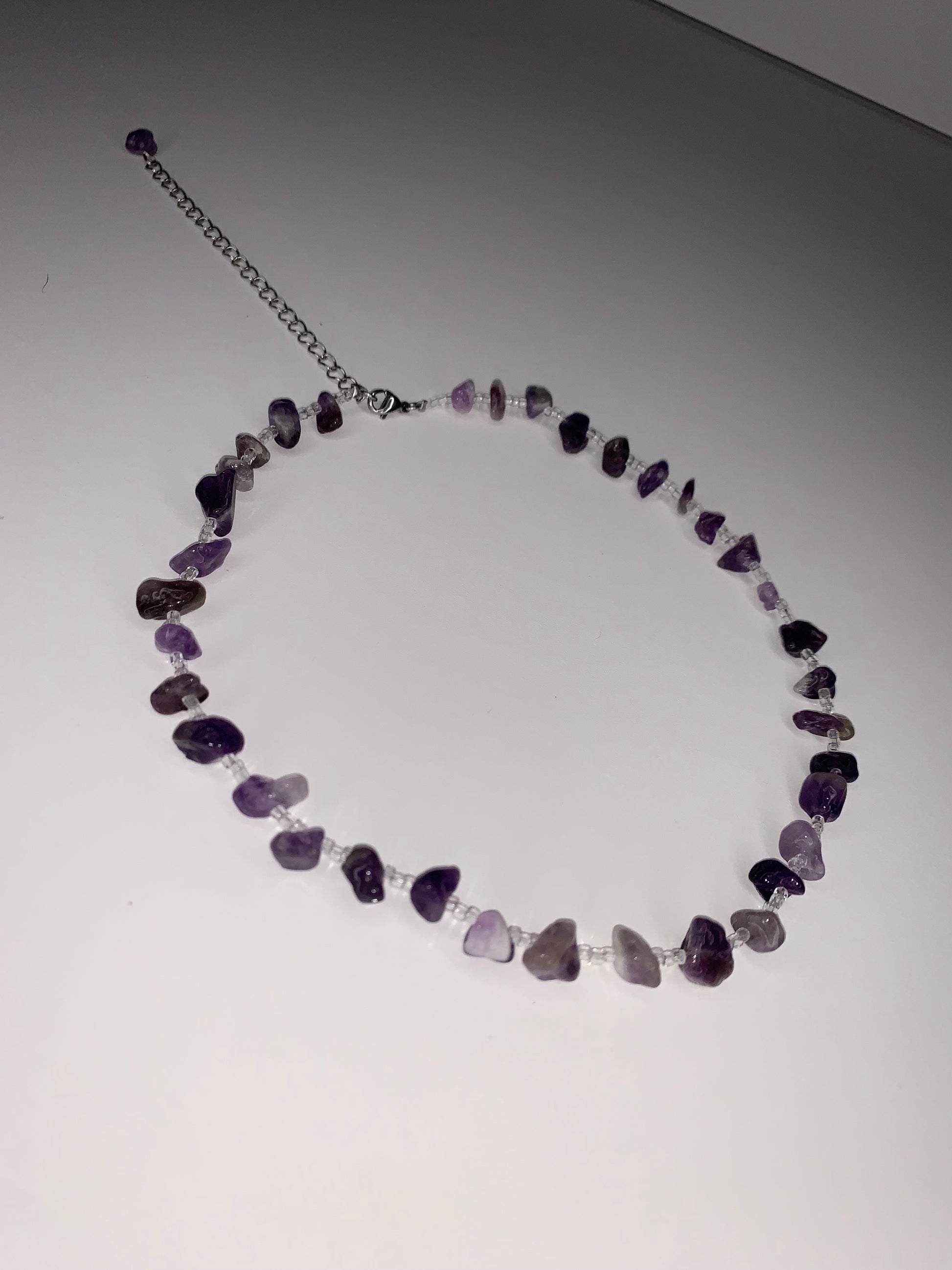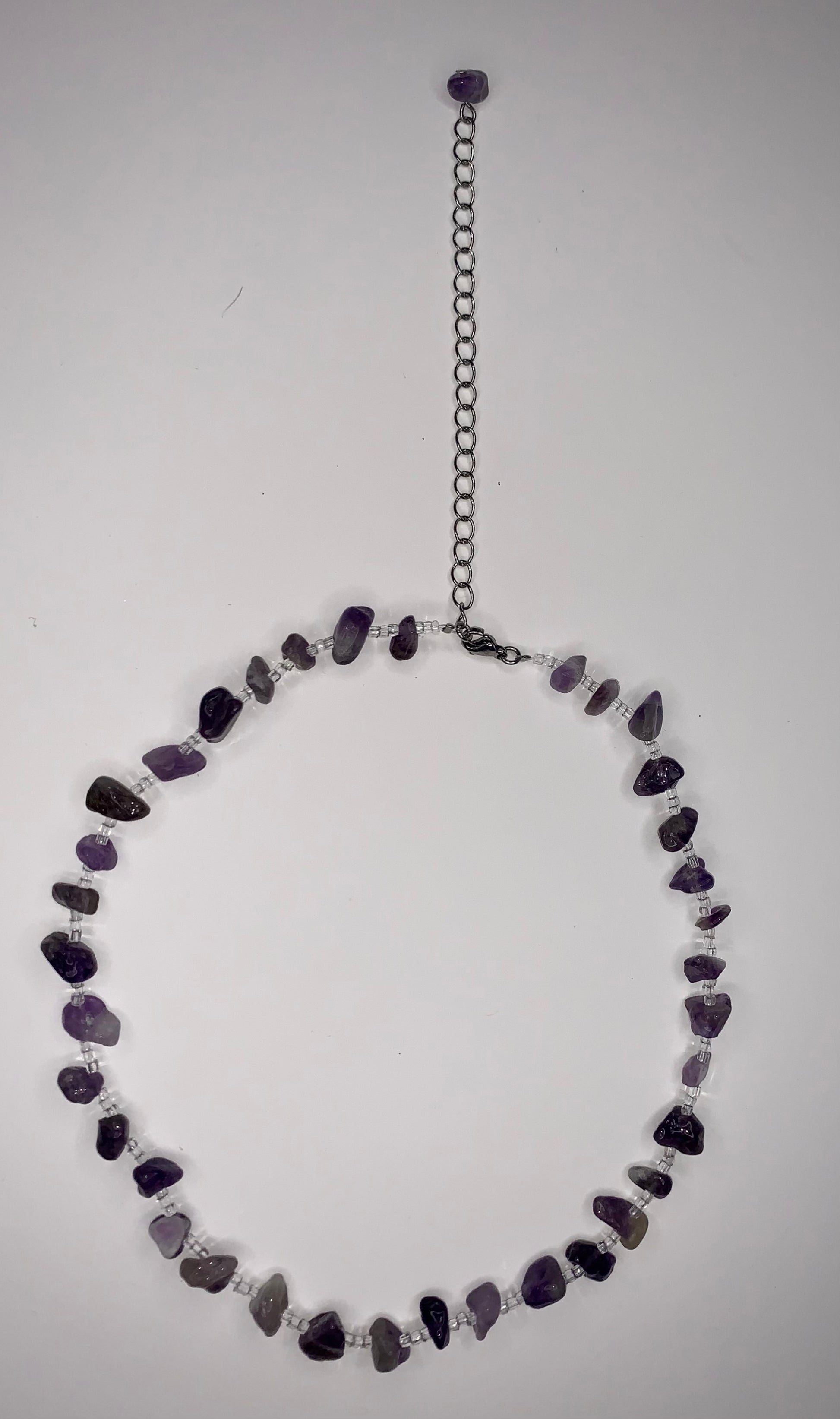 • Stainless steel clasp and chain with Amethyst and glass beads
