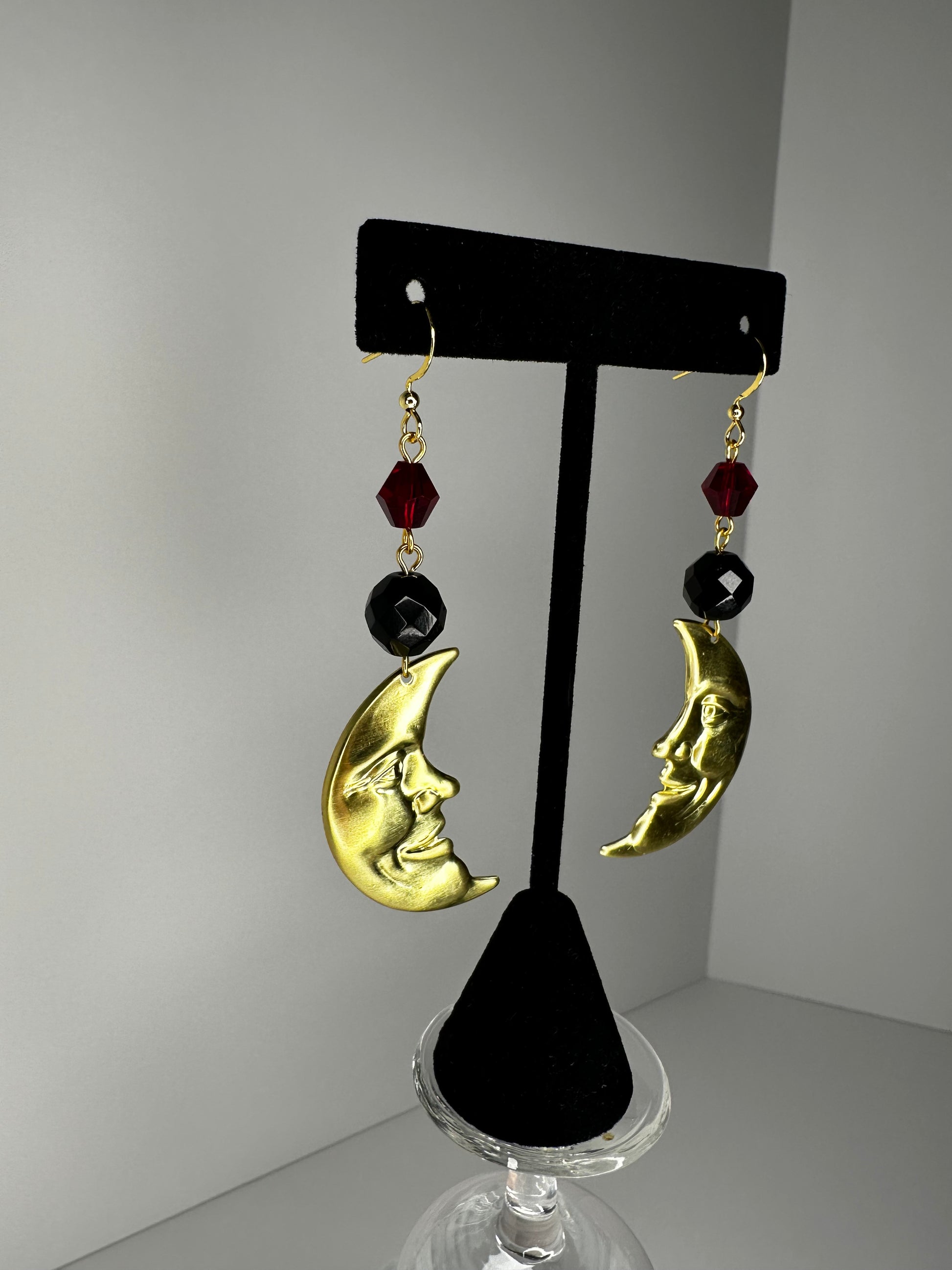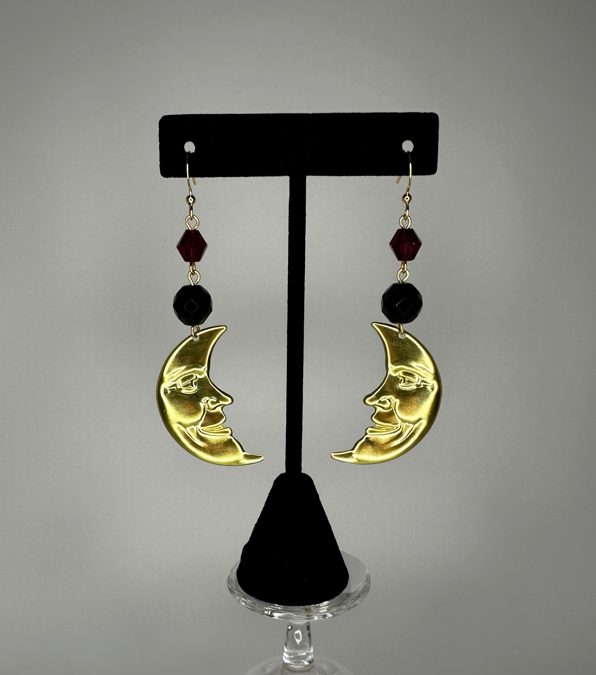 • Made with 14k gold dipped hooks, wire and jump rings. Moon charm is made from brass. It’s accompanied with glass beads.