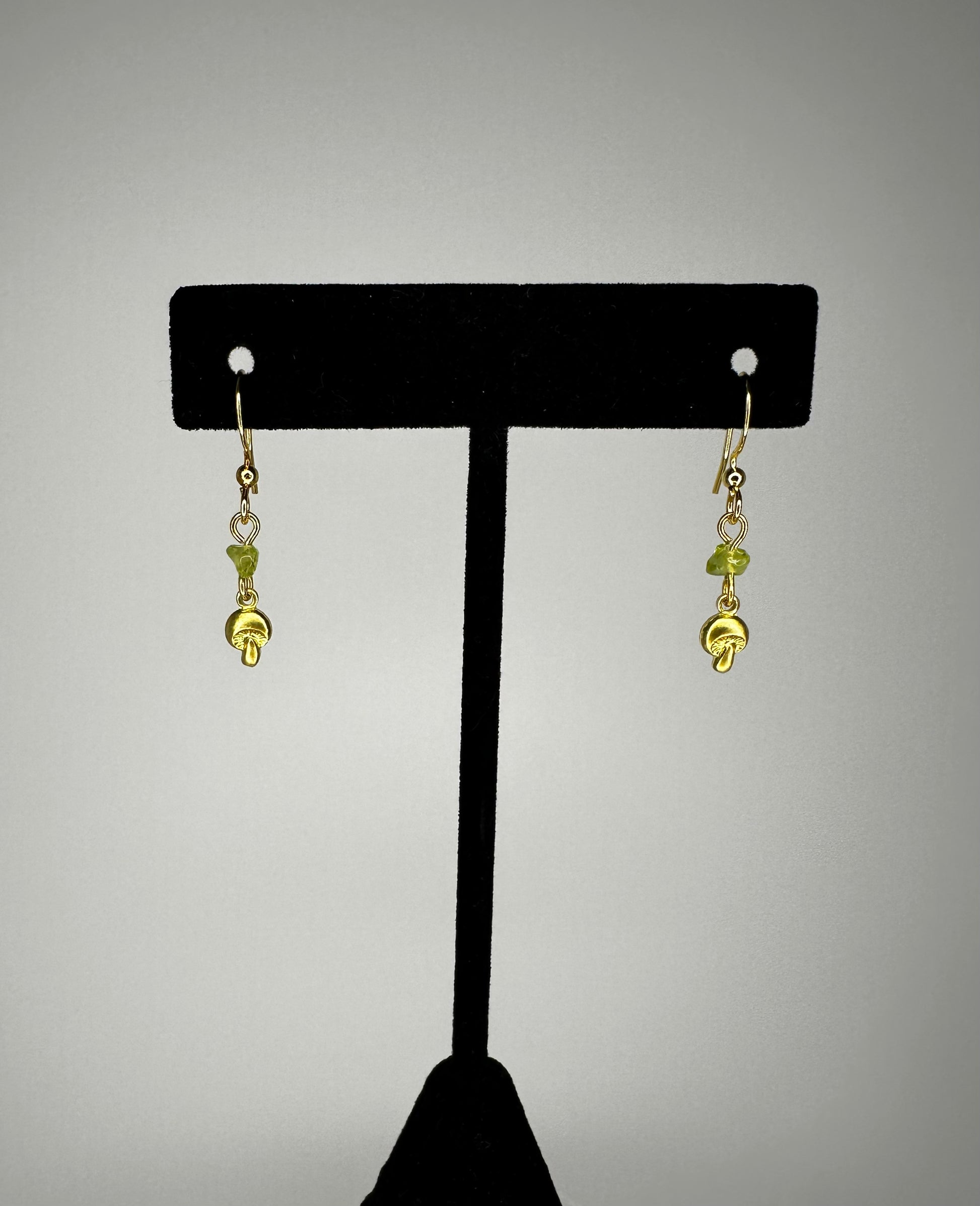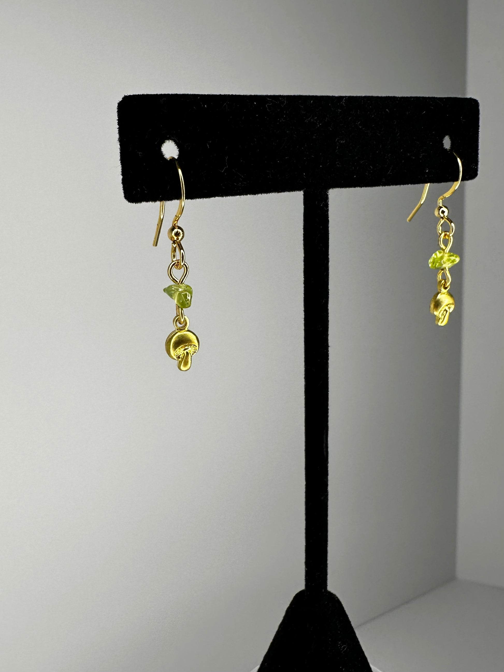 • Made with 14k gold dipped hooks and wire. Mushroom charm is made from brass. It’s accompanied with Peridot beads.