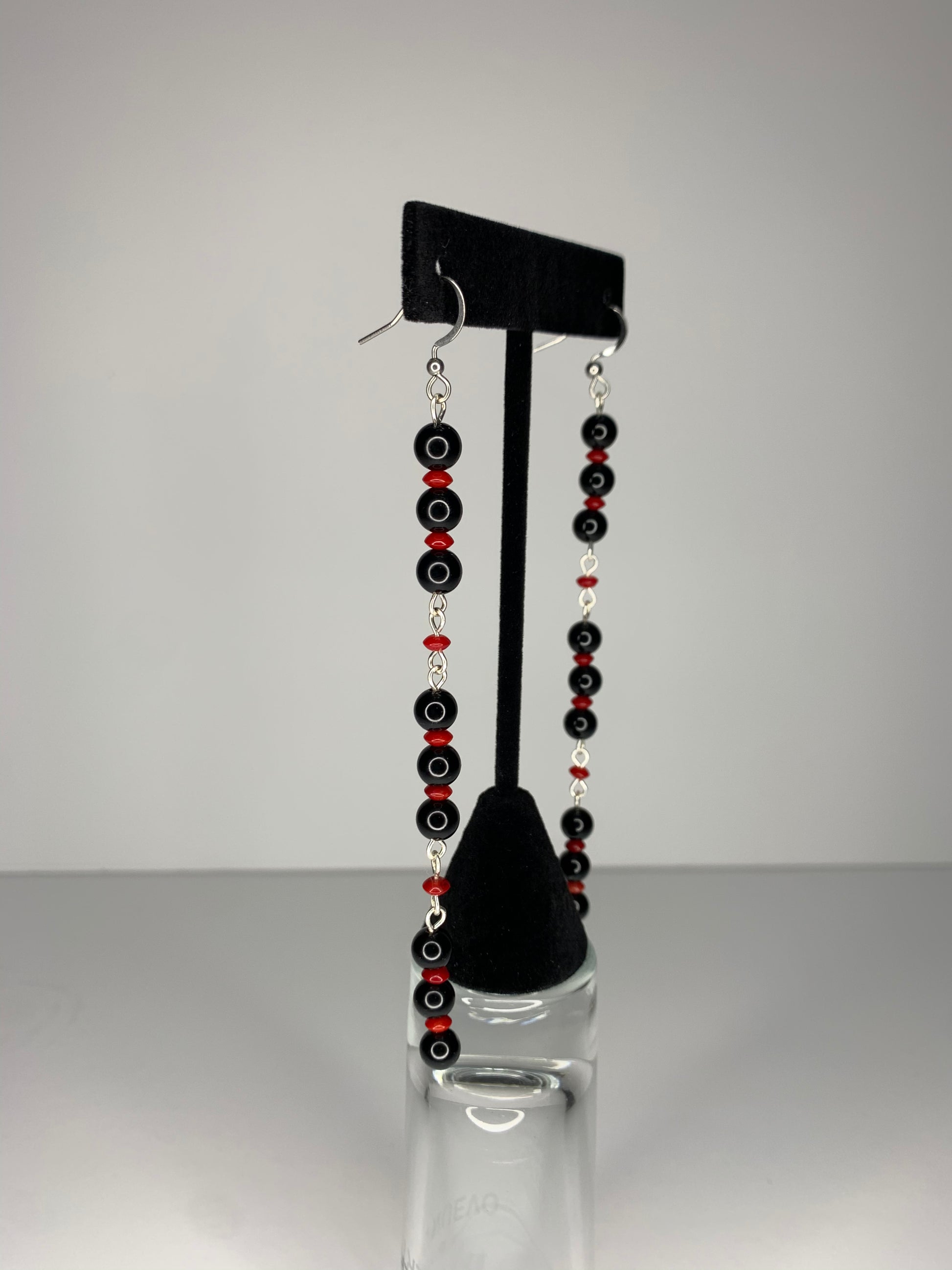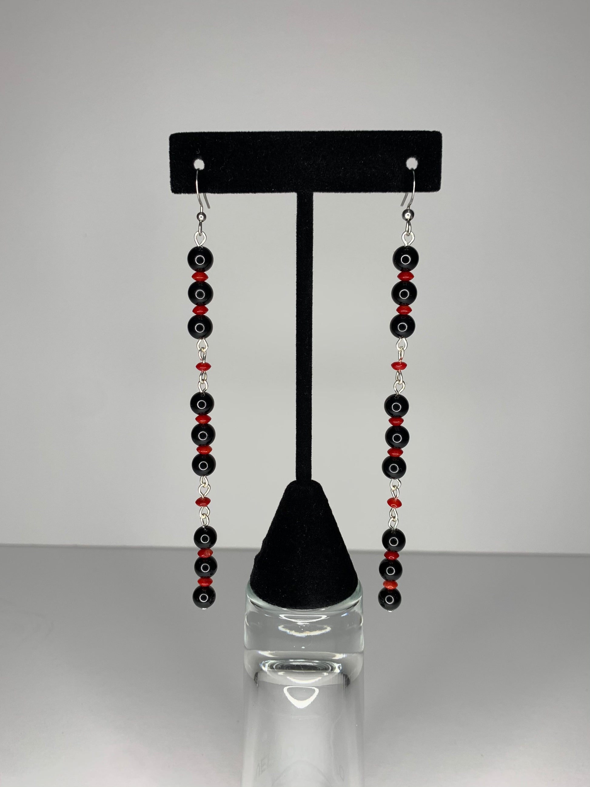 • Made with Onyx and red coral beads
